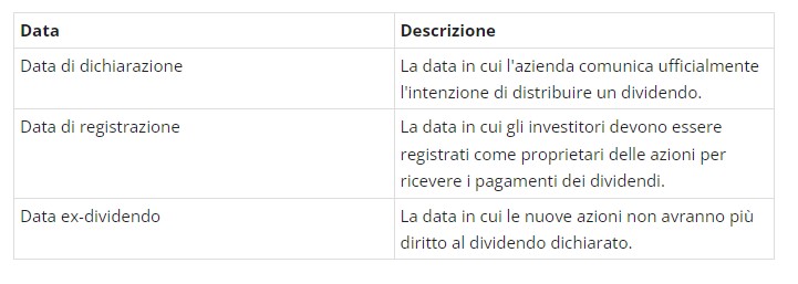 Date importanti legate ai pagamenti dei dividendi
