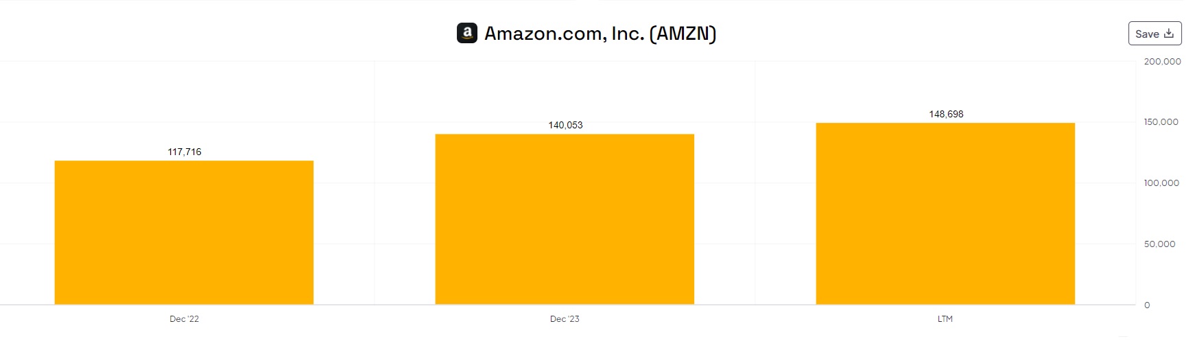 Infatti la pubblicità su Amazon è cresciuta rispetto a Alphabet o Meta, e come puoi vedere, stiamo parlando di tassi di crescita molto più alti negli ultimi anni.