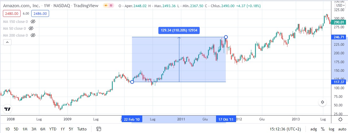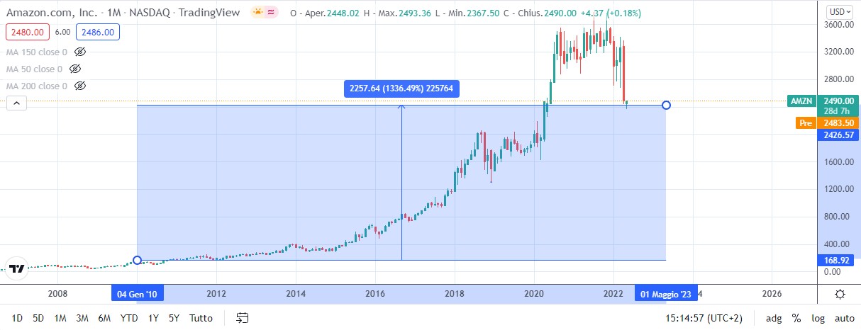 Tradotto: se l?avessi acquistata nel 2010 a $ 117 ed avessi avuto la pazienza di tenerla in portafoglio fino ad oggi?avresti ottenuto un guadagno?del 1.336% !!