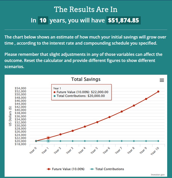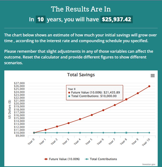 Supponendo di investire un capitale iniziale di $ 10.000 e di riuscire ad ad ottenere un rendimento costante del 10% all?anno: