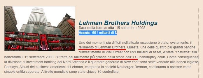 Si trattava di una delle banche più grandi del Mondo, con Asset per 690 Milardi di Dollari..eppure ha dichiarato bancarotta durante la crisi del 2008-2009.