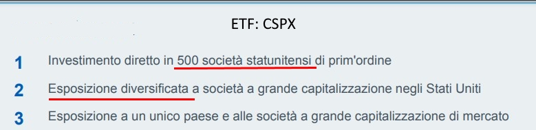 Se acquisti l? ETF CSPX, che replica l?andamento dell?indice  Americano S&P 500, investi automaticamente nelle migliori 500 aziende degli USA, appartenenti ai settori più disparati.