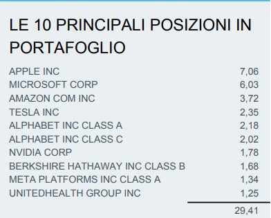 In questo modo, come puoi vedere nel dettaglio qui sotto, con un unico acquisto, diventati conteporaneamente azionista di Apple, Amazon, Alphabet, Tesla?