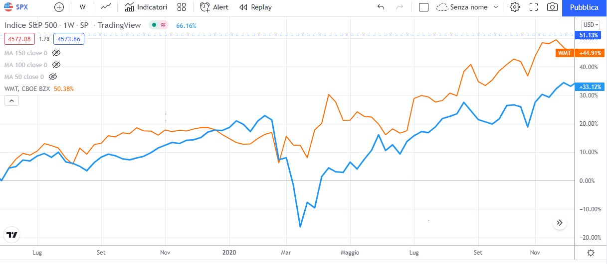 Facciamo un confronto dell?andamento di questo titolo con l?indice della Borsa Americana (l? S&P500) durante la crisi del Covid, a Marzo 2020.